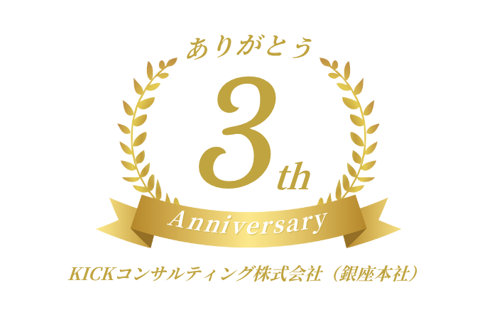 KICKコンサルティング株式会社(銀座本社)は、創業3周年を迎えました。